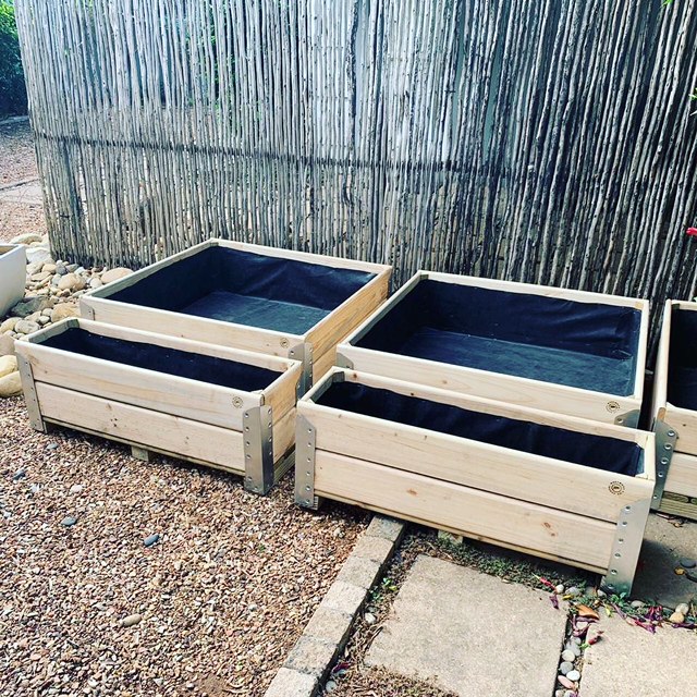Made from South African pine wood radiata and built to order from new materials. They can be treated with a matt timber dark oak or clear varnish and lined with a natural fabric lining ready for planting at an additional cost per planter box. The black multi-purpose landscape fabric lining offers protection, permeable barrier against weeds, stabilises soil, retains moisture and improves filtration.